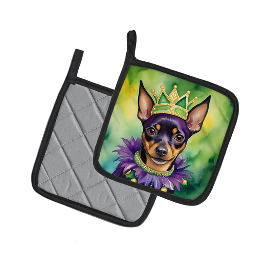 Miniature Pinscher King of Mardi Gras Pair of Pot Holders