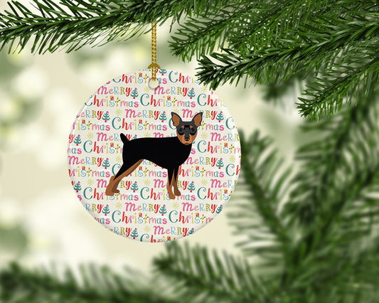 Miniature Pinscher Merry Christmas Ceramic Ornament