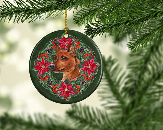 Miniature Pinscher #2 Poinsetta Wreath Ceramic Ornament