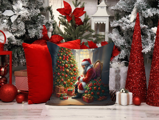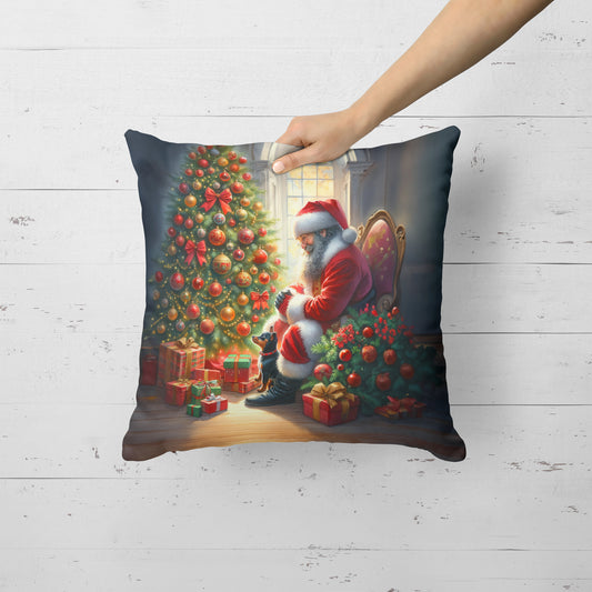 Miniature Pinscher and Santa Claus Throw Pillow