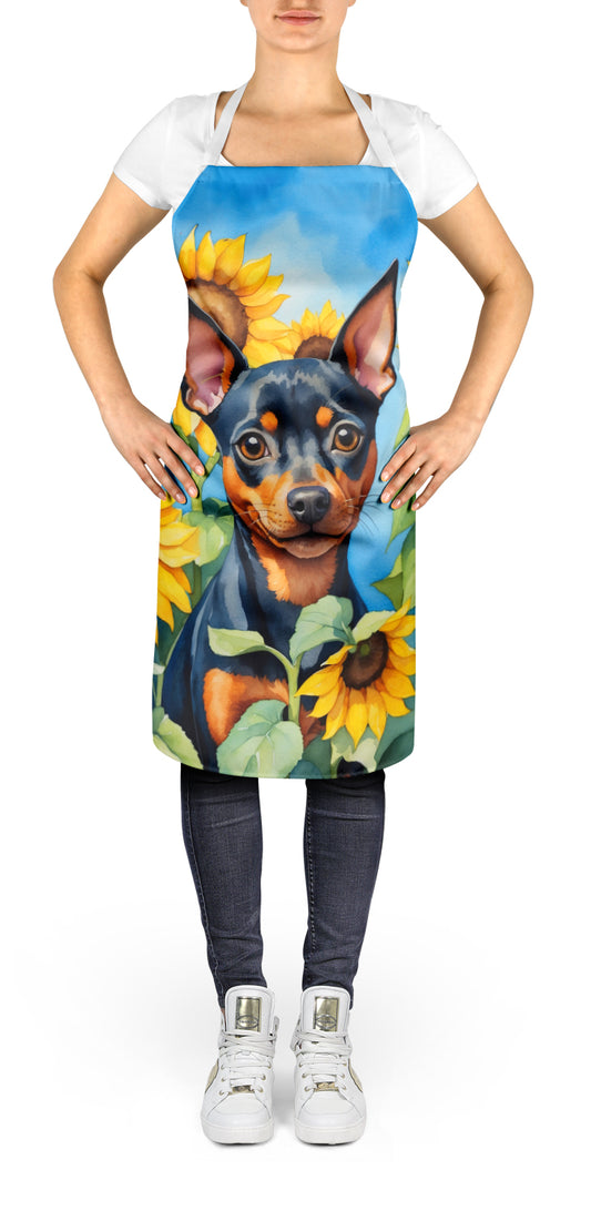 Miniature Pinscher in Sunflowers Apron