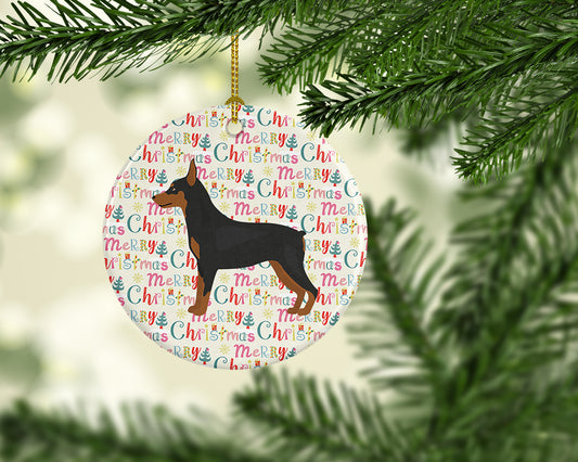 Miniature Pinscher Merry Christmas Ceramic Ornament