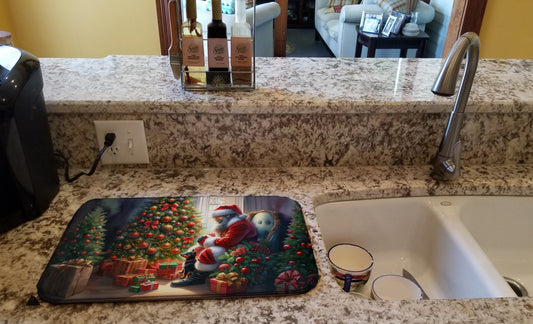 Miniature Pinscher and Santa Claus Dish Drying Mat