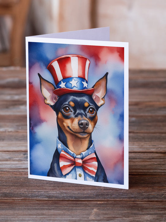 Miniature Pinscher Patriotic American Greeting Cards Pack of 8