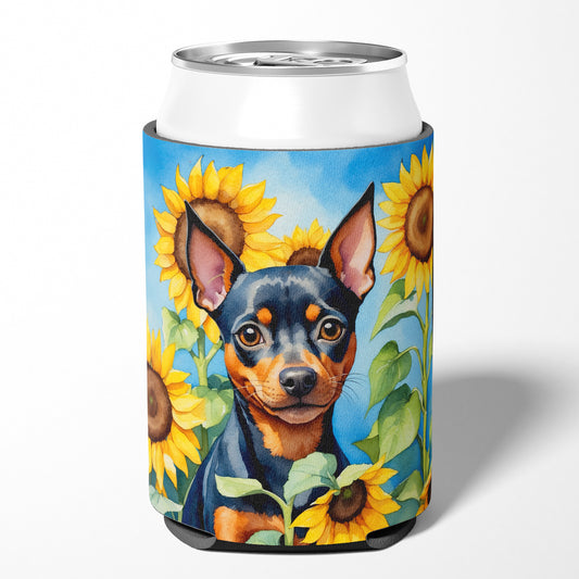 Miniature Pinscher in Sunflowers Can or Bottle Hugger