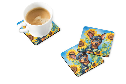 Miniature Pinscher in Sunflowers Pair of Pot Holders