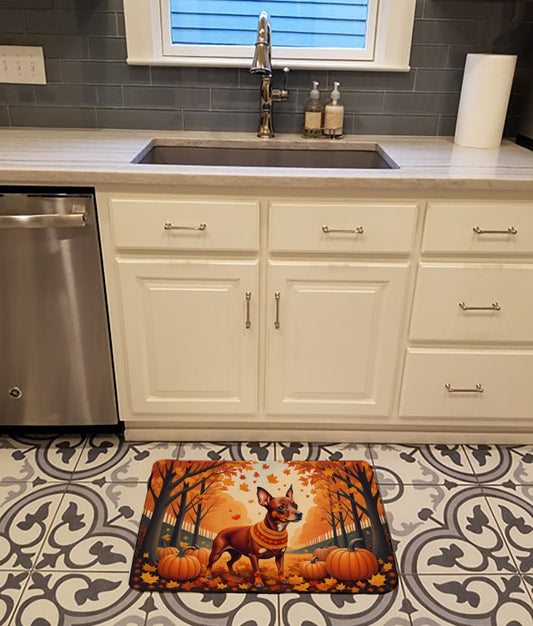 Red Miniature Pinscher Fall Memory Foam Kitchen Mat
