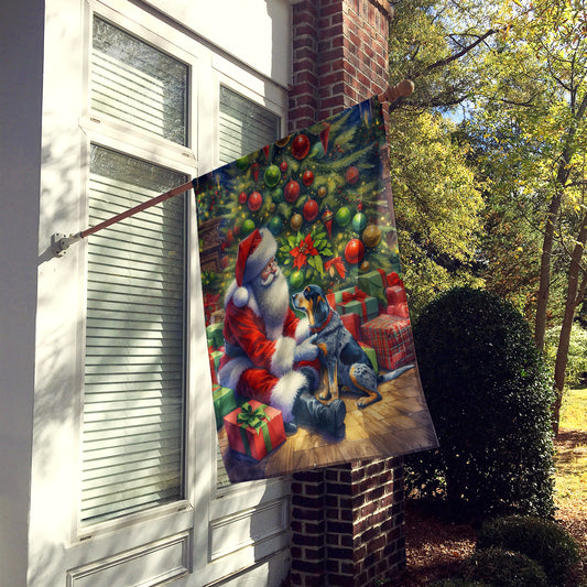 Bluetick Hound and Santa Claus House Flag