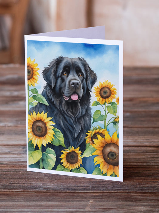 Newfoundland in Sunflowers Greeting Cards Pack of 8