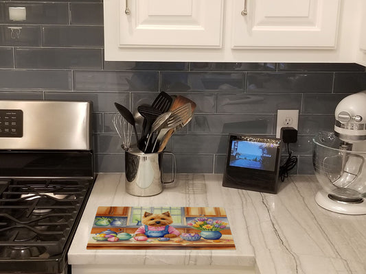 Decorating Easter Norwich Terrier Glass Cutting Board