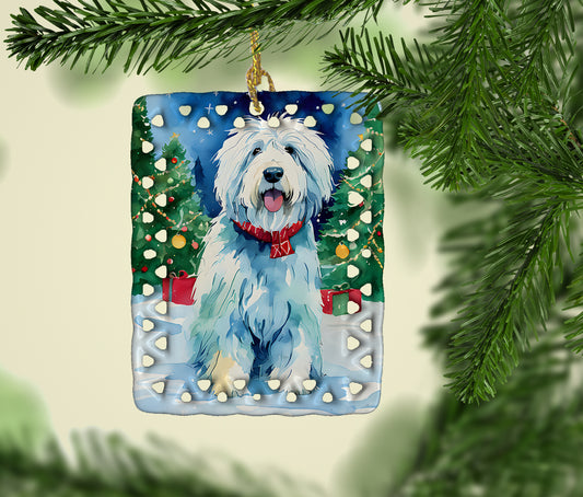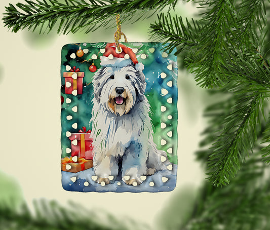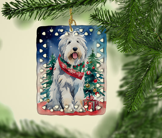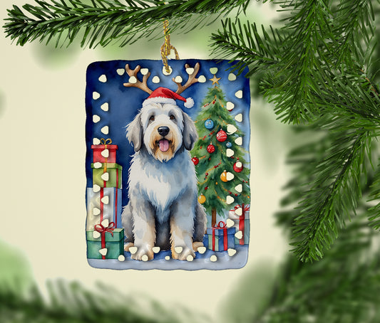 Old English Sheepdog Holiday Christmas Porcelain Ornament