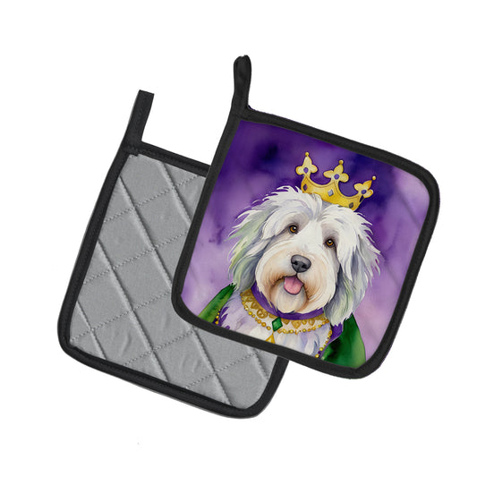 Old English Sheepdog King of Mardi Gras Pair of Pot Holders