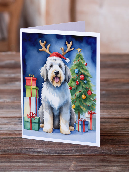 Old English Sheepdog Christmas Reindeer Greeting Cards Pack of 8