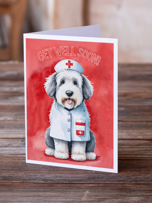 Old English Sheepdog Get Well Soon Greeting Cards Pack of 8