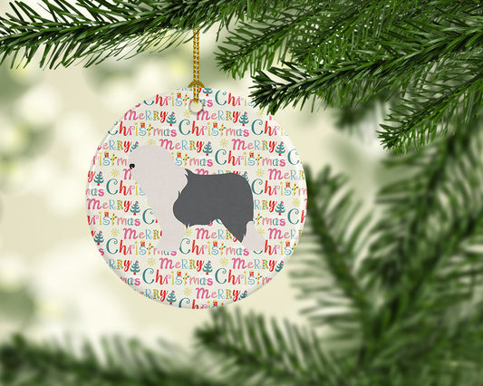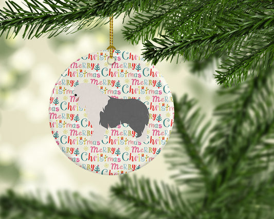 Old English Sheepdog Merry Christmas Ceramic Ornament