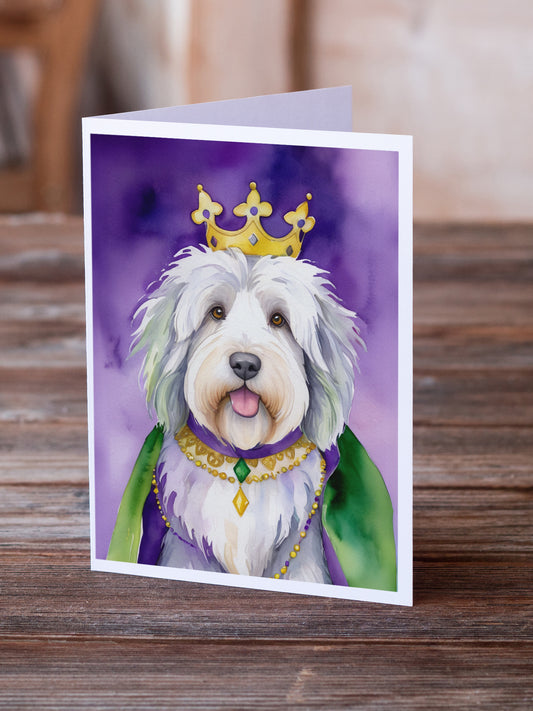 Old English Sheepdog King of Mardi Gras Greeting Cards Pack of 8