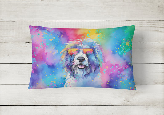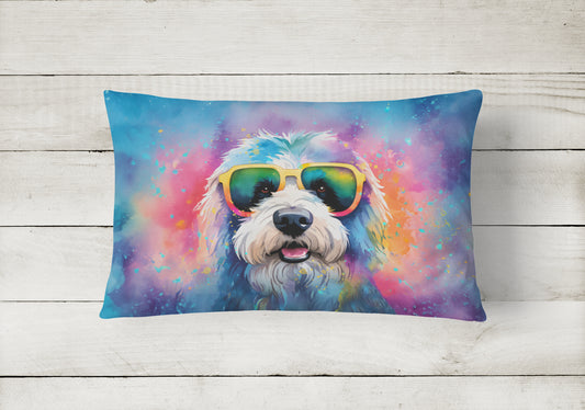 Old English Sheepdog Hippie Dawg Throw Pillow