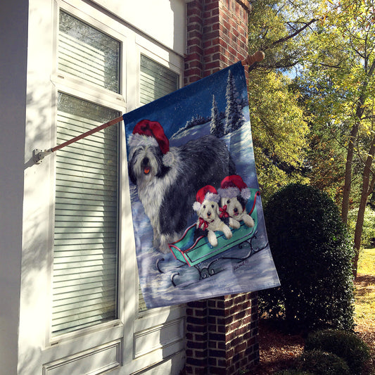 Old English Sheepdog Christmas Flag Canvas House Size PPP3117CHF
