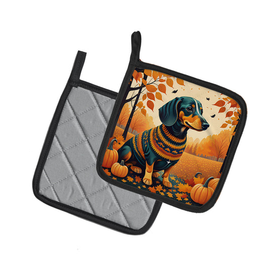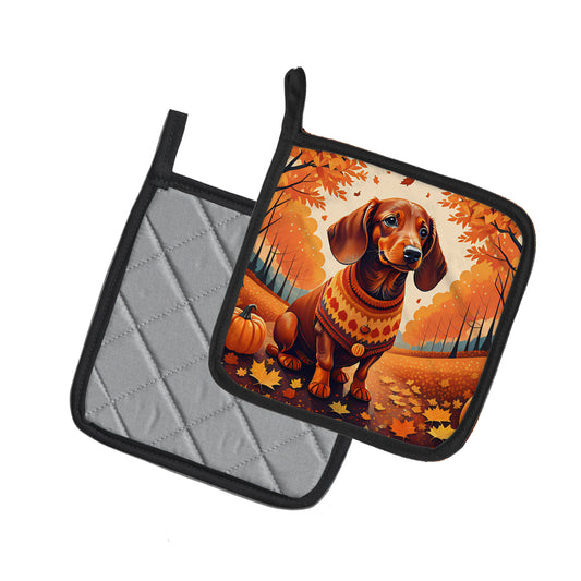 Dachshund Fall Pair of Pot Holders