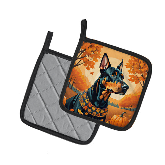 Doberman Pinscher Fall Pair of Pot Holders