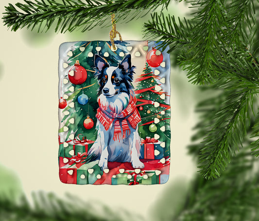 Papillon Holiday Christmas Porcelain Ornament