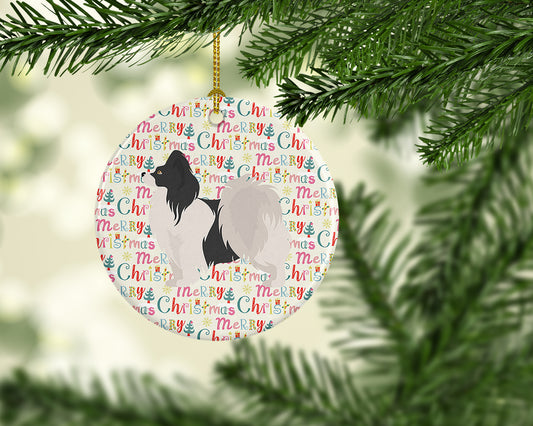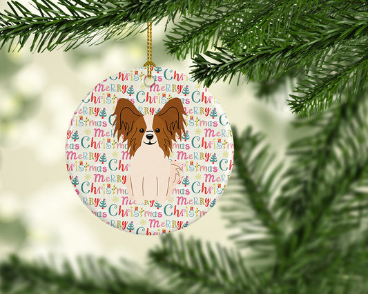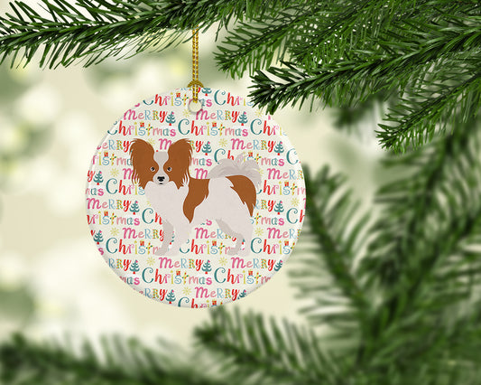 Papillon #2 Merry Christmas Ceramic Ornament