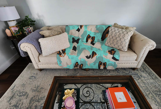 Black and Whtie Papillon Soft Travel Blanket with Bag