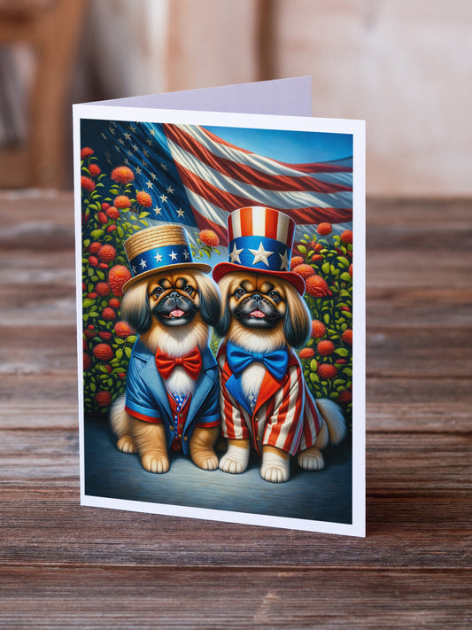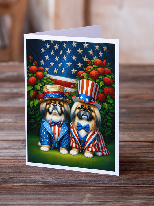 Pekingese Patriotic American Greeting Cards Pack of 8