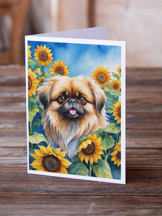 Pekingese in Sunflowers Greeting Cards Pack of 8