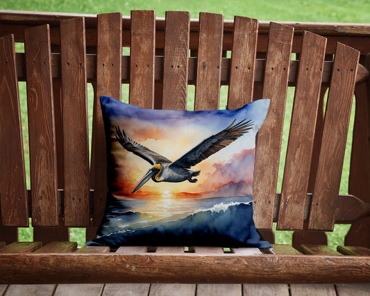 Pelican Fyling at Sunrise Throw Pillow