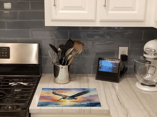 Pelican Fyling at Sunrise Glass Cutting Board