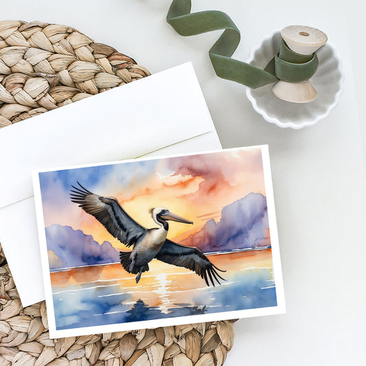 Pelican Fyling at Sunrise Greeting Cards Pack of 8