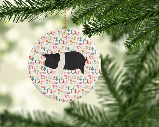 Vietnamese Pot-Bellied Pig Christmas Ceramic Ornament