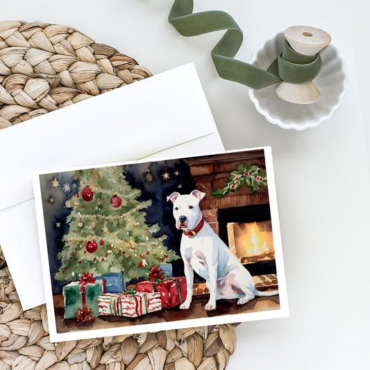 White Pit Bull Terrier Christmas Greeting Cards and Envelopes Pack of 8