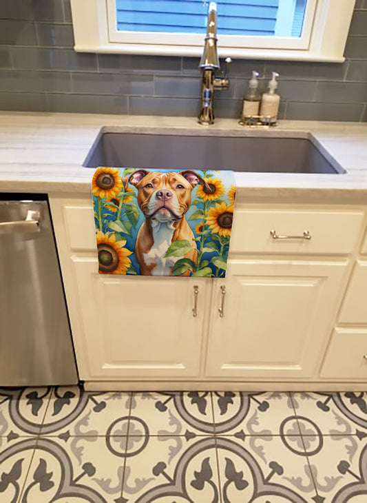 Pit Bull Terrier in Sunflowers Kitchen Towel