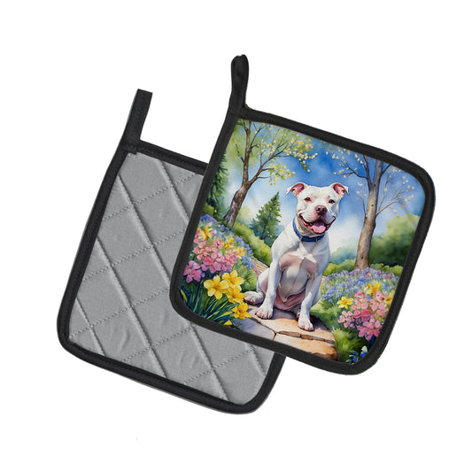 Pit Bull Terrier Spring Path Pair of Pot Holders