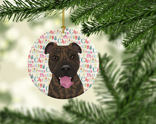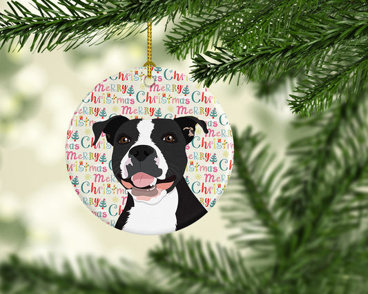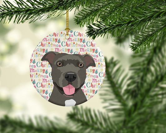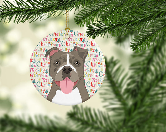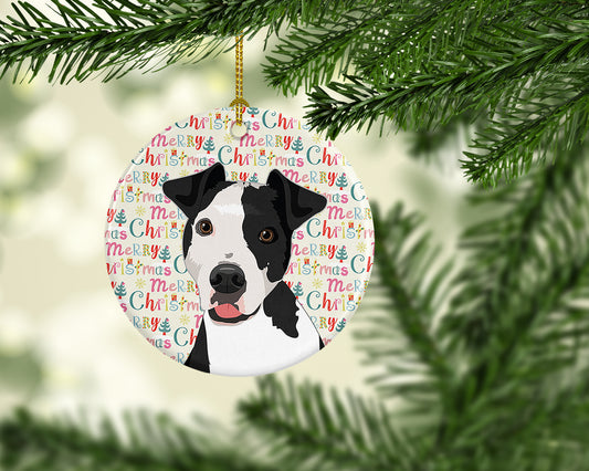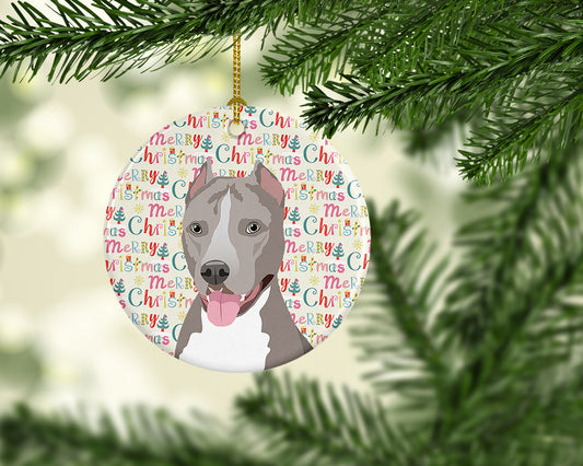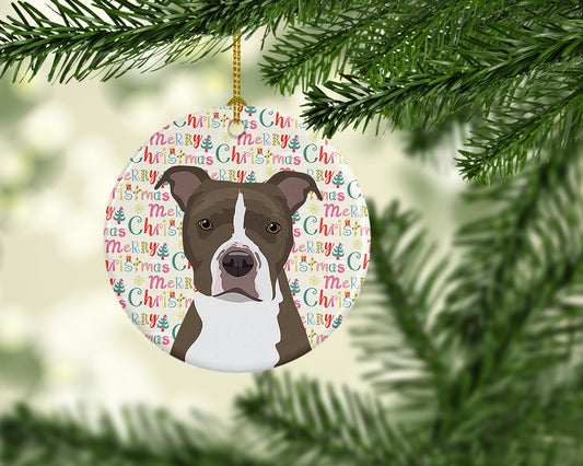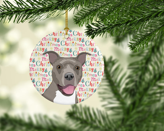 Pit Bull Terrier Merry Christmas Ceramic Ornament