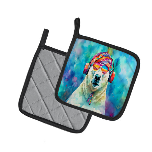 Hippie Animal Polar Bear Pair of Pot Holders
