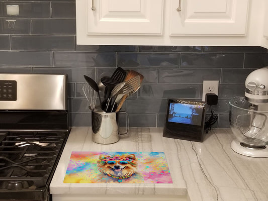 Pomeranian Hippie Dawg Glass Cutting Board