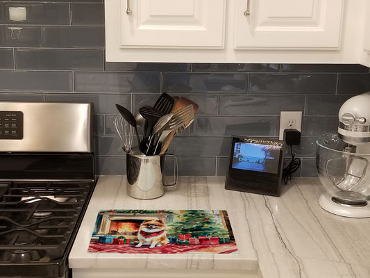 Pomeranian Cozy Christmas Glass Cutting Board