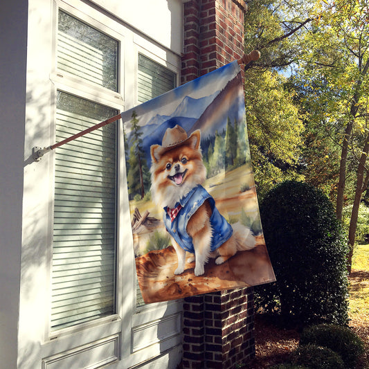 Pomeranian Cowboy Welcome House Flag