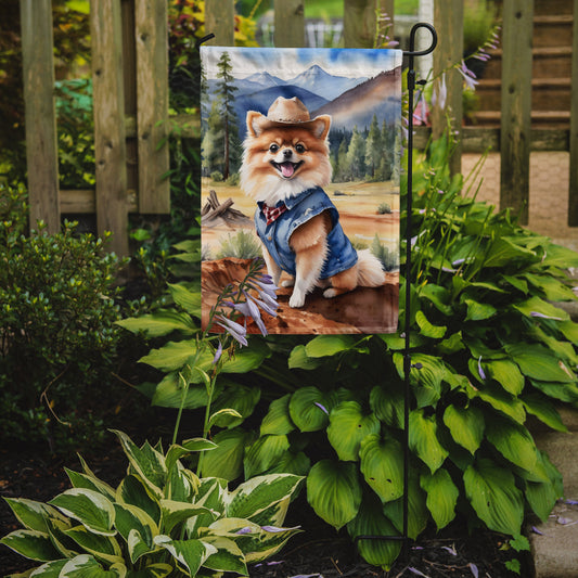 Pomeranian Cowboy Welcome Garden Flag