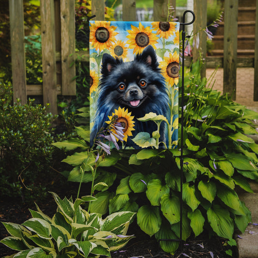 Pomeranian in Sunflowers Garden Flag