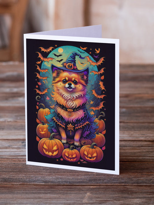 Pomeranian Spooky Halloween Greeting Cards and Envelopes Pack of 8