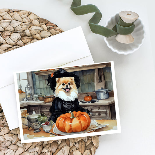 Pomeranian Witchy Halloween Greeting Cards and Envelopes Pack of 8