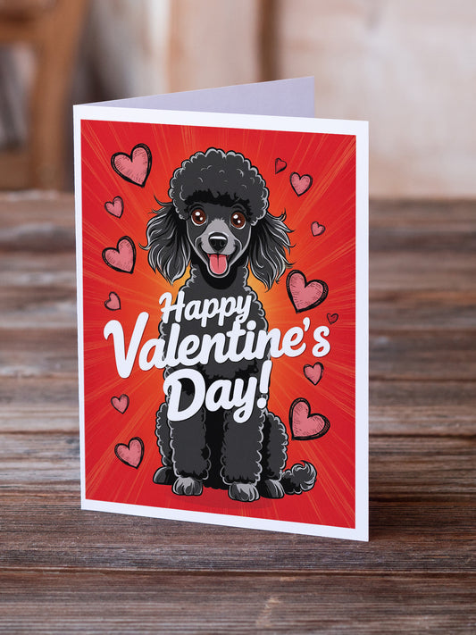 Black Standard Poodle Happy Valentine's Day Greeting Cards Pack of 8