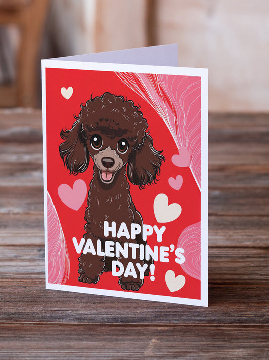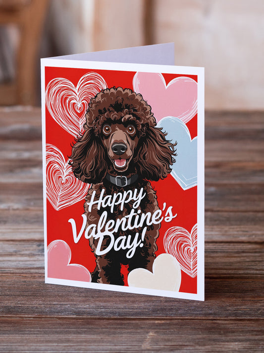 Chocolate Standard Poodle Happy Valentine's Day Greeting Cards Pack of 8