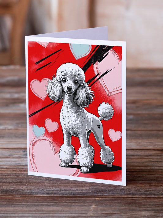 White Toy Poodle Happy Valentine's Day Greeting Cards Pack of 8