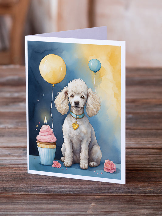 White Poodle Happy Birthday Greeting Cards Pack of 8
