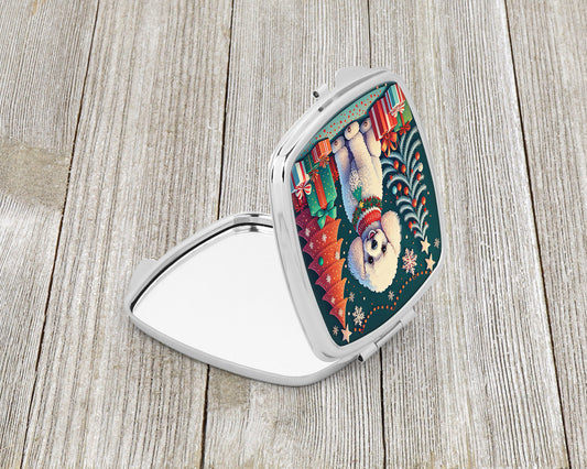 White Toy Poodle Christmas Compact Mirror